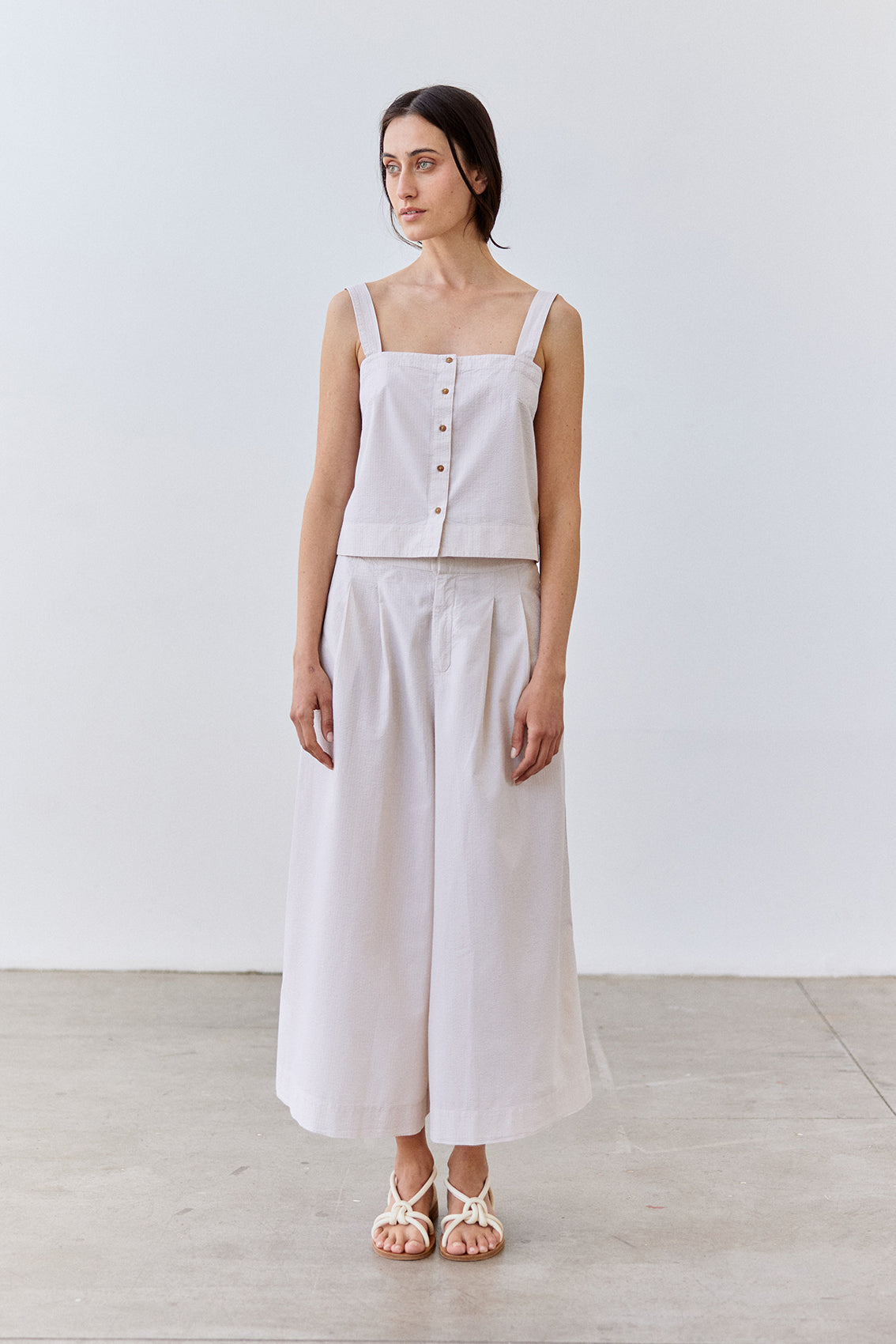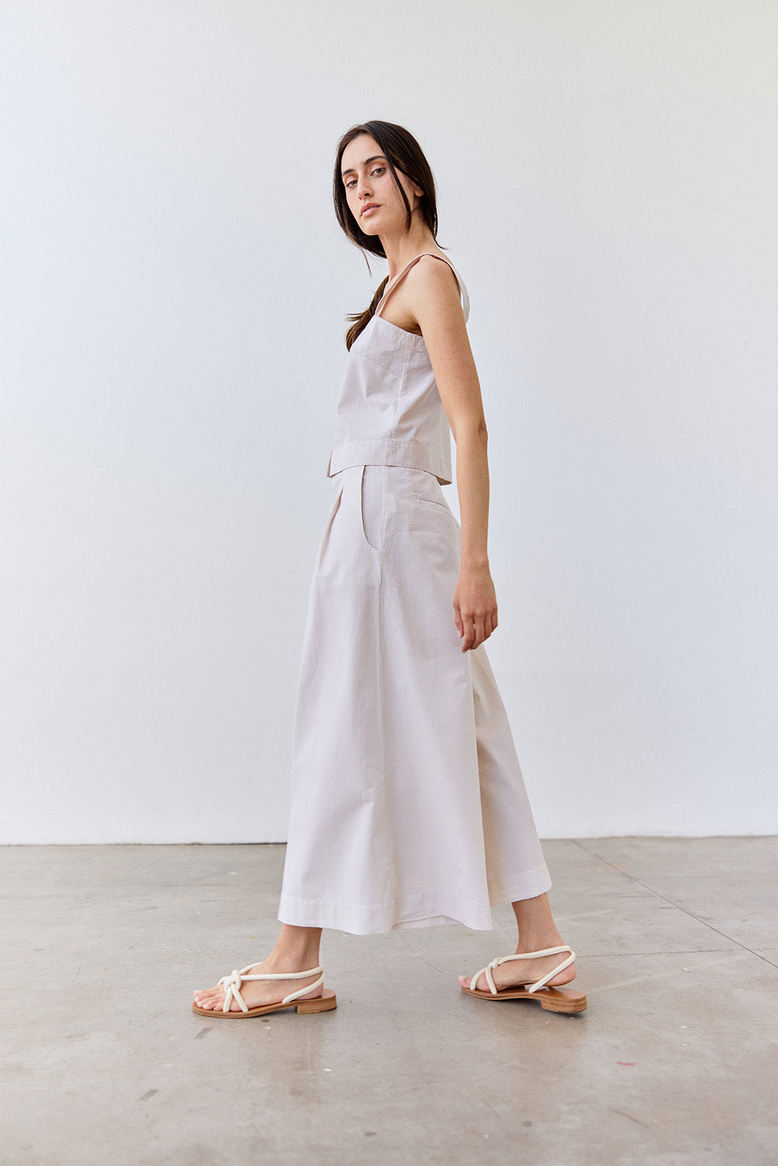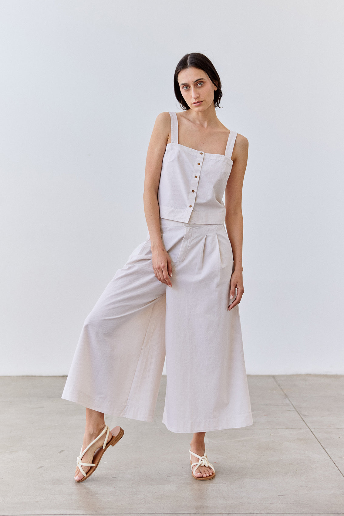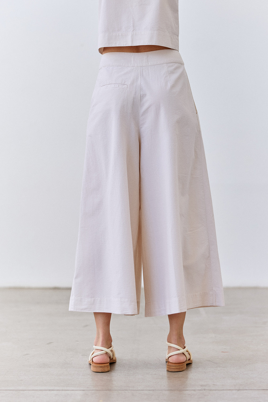 Pleated Wide-Leg Seersucker Cotton Trousers - Crudo