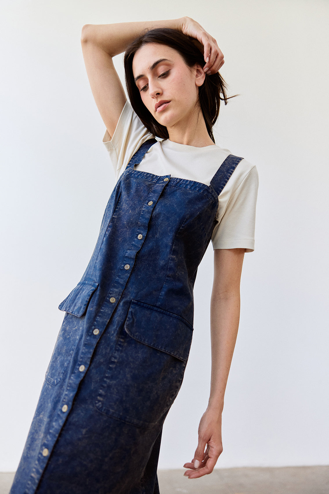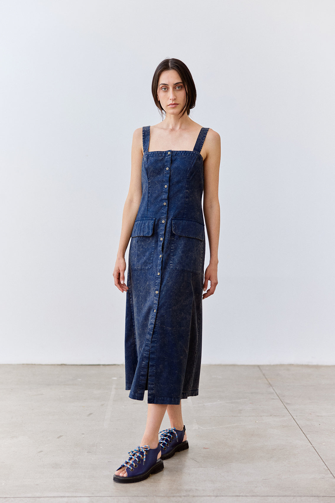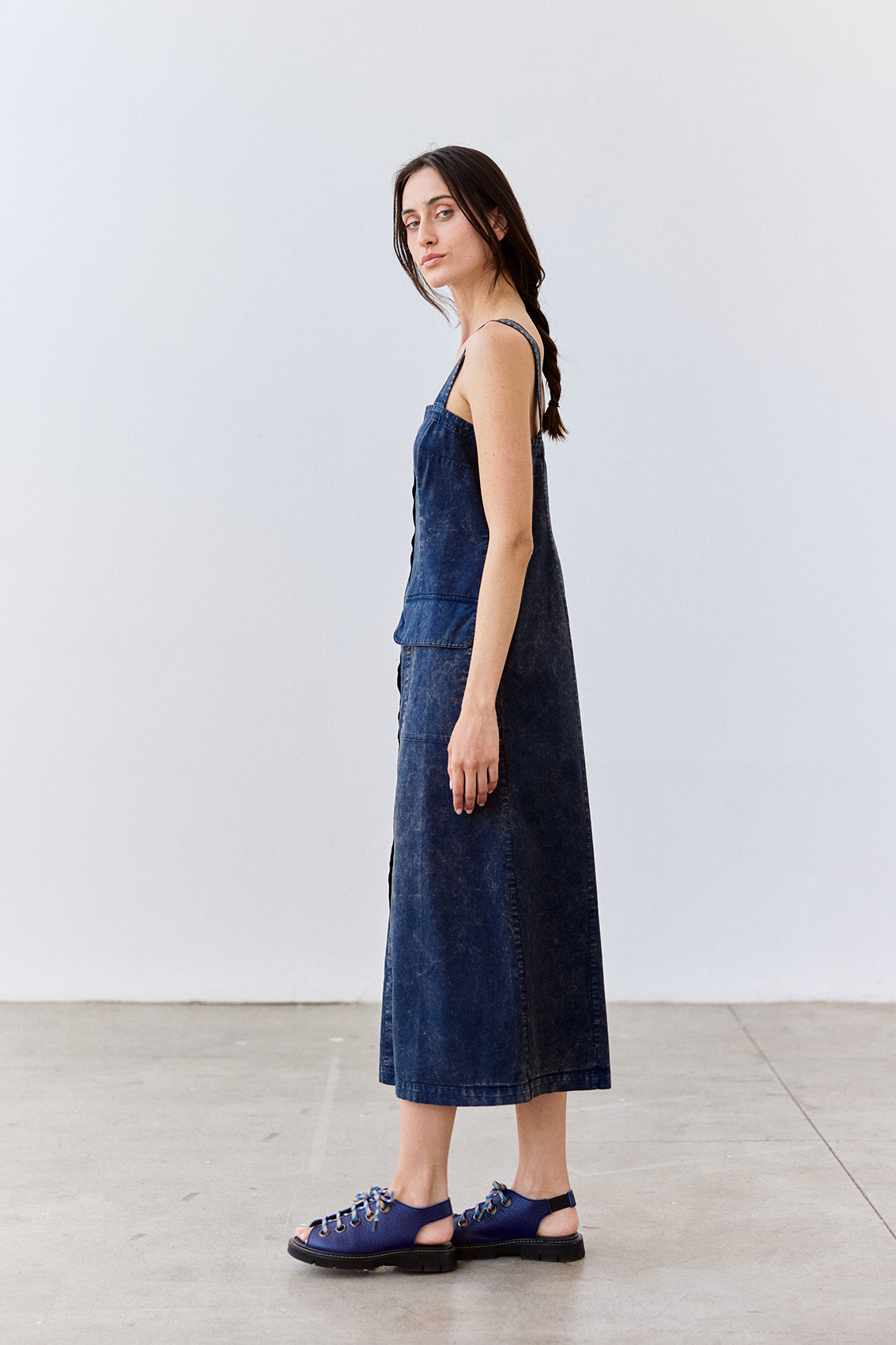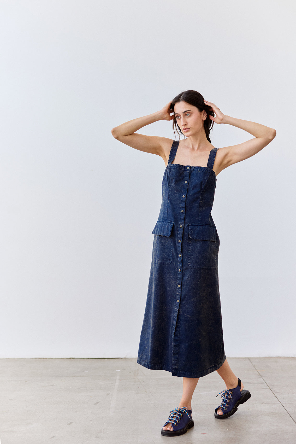Buttoned Sleeveless Cotton Dress - Piedra Washed
