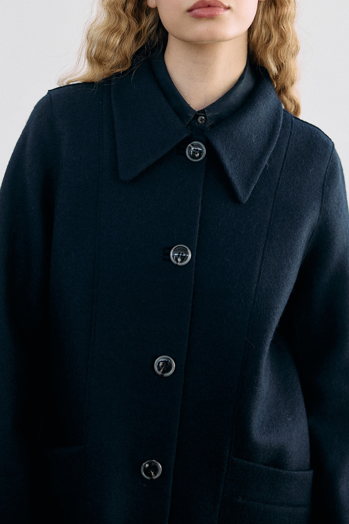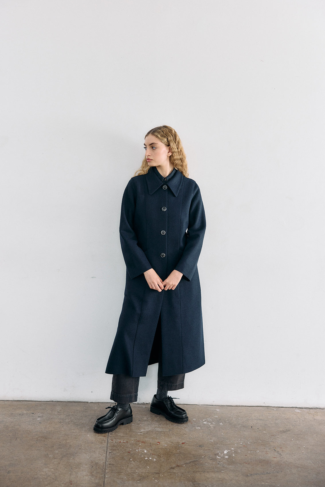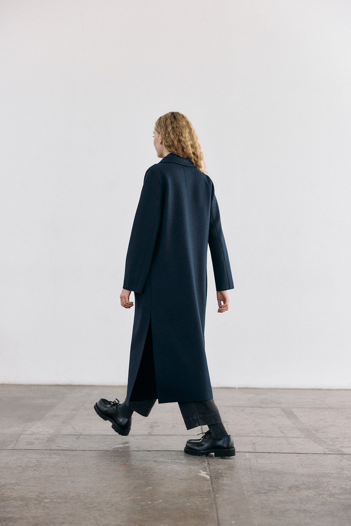 Collared Felted Alpaca/Wool Long Coat - Medianoche