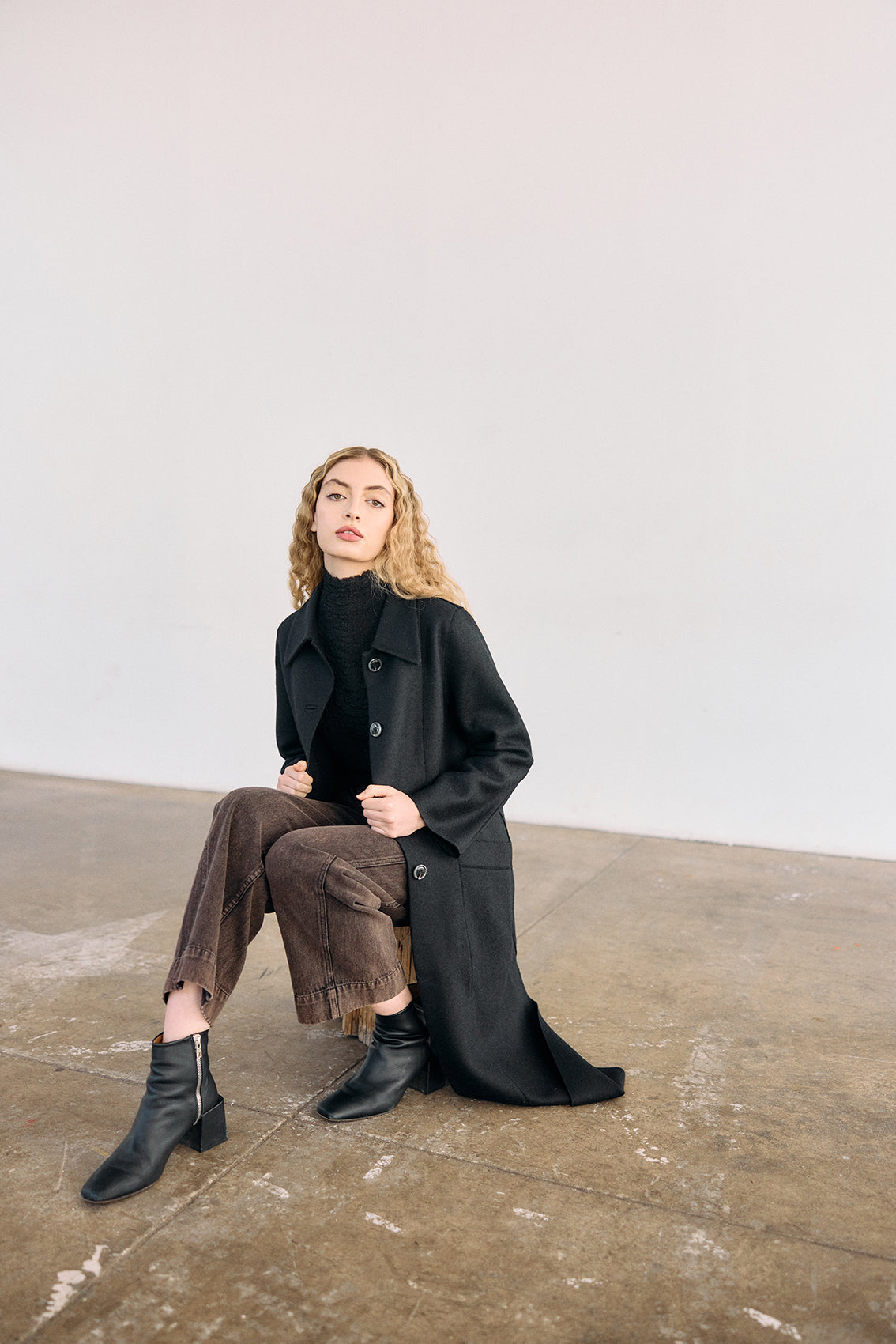 Collared Felted Alpaca/Wool Long Coat - Ónix