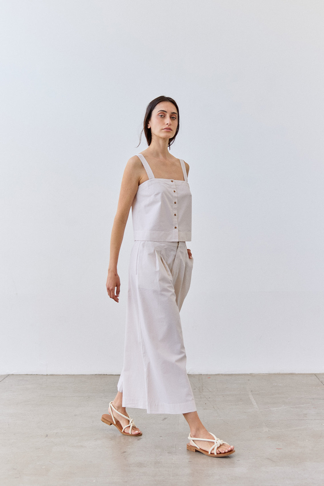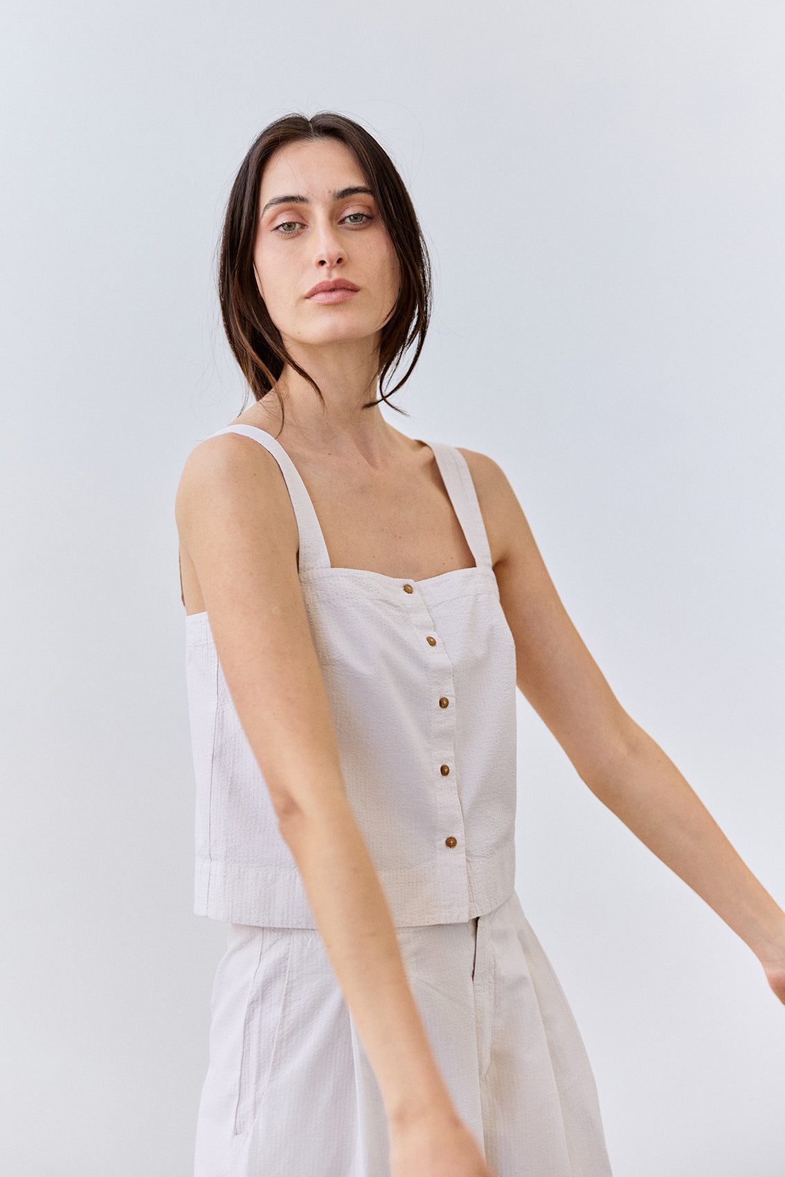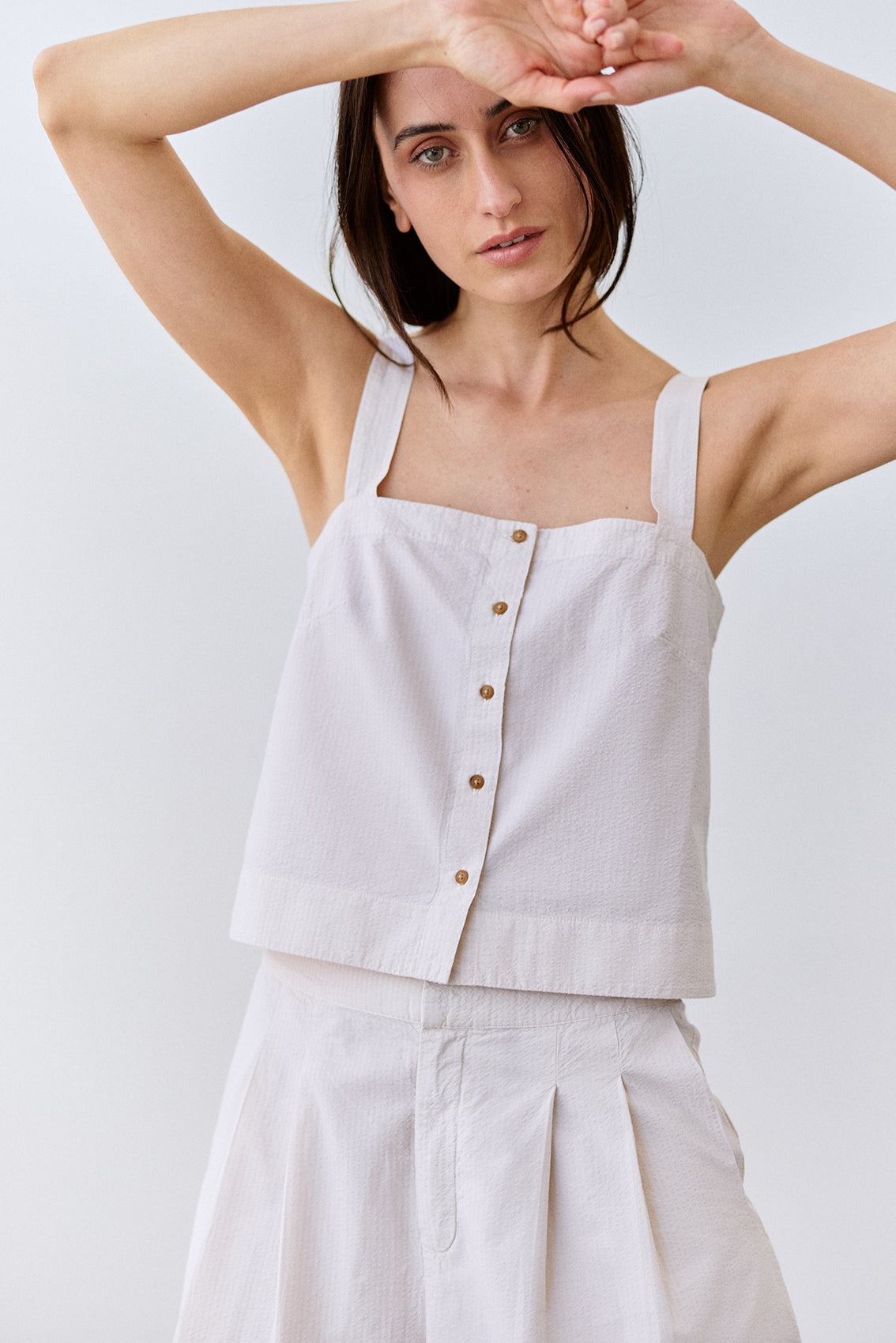 Cropped Buttoned Seersucker Cotton Top - Crudo