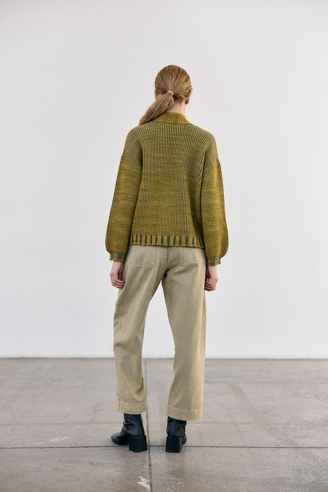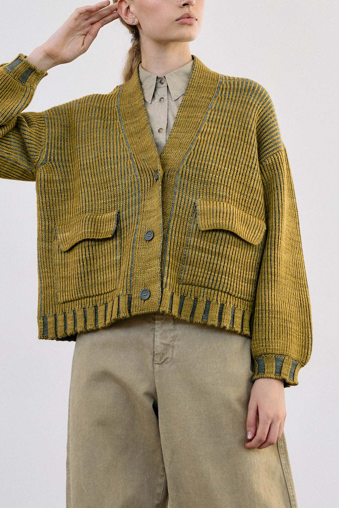 Hand-Dyed Contrast Merino Wool Cardigan - Mix Ocre
