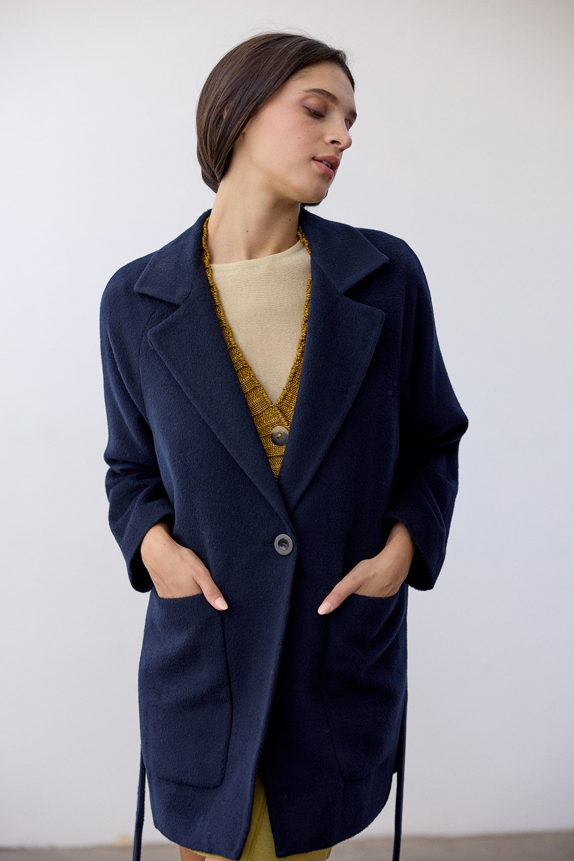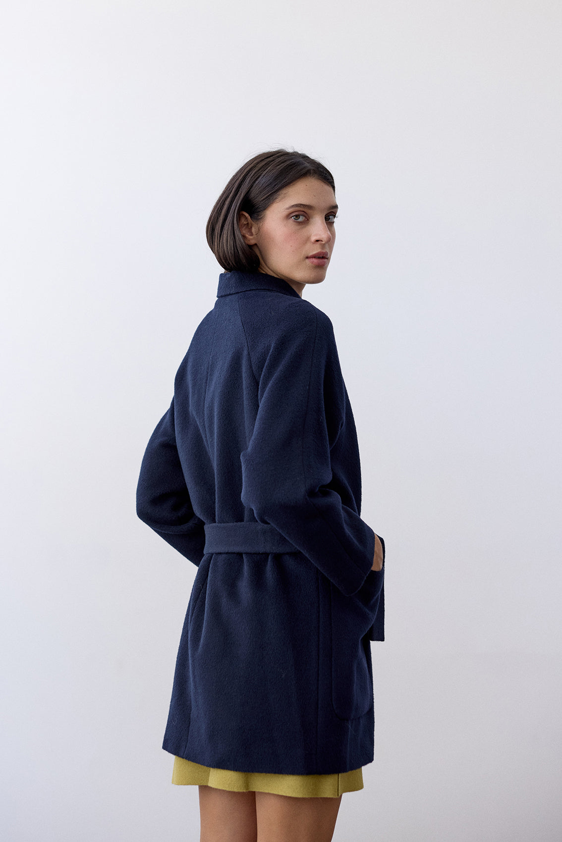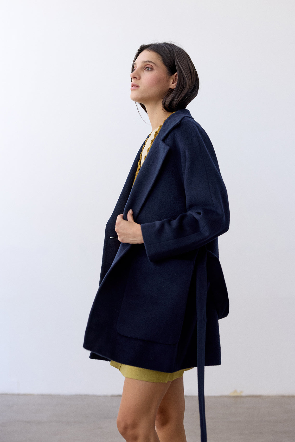 Notch Collar Short Baby Alpaca Coat - Medianoche