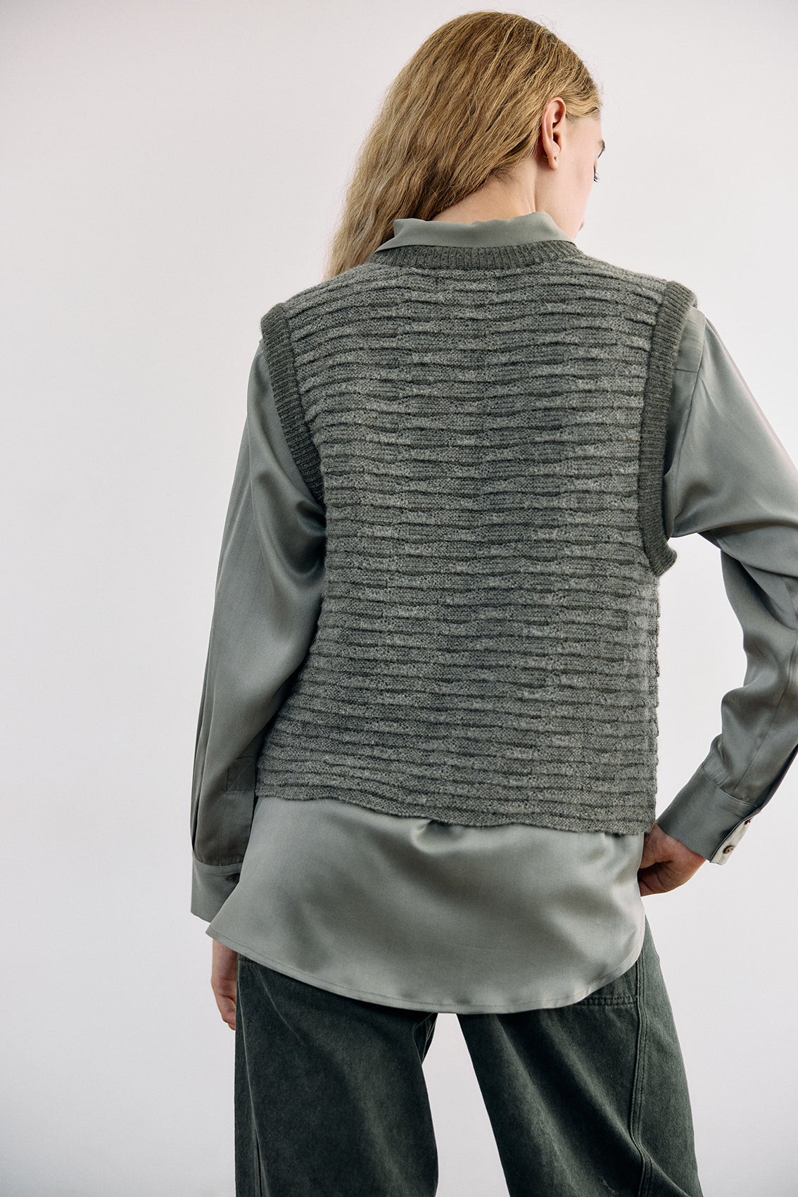 Textured Alpaca Knit Sweater Vest - Musgo