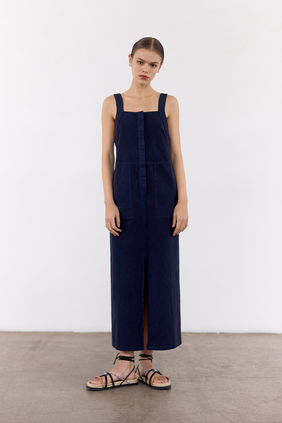 Vestido Utilitario Algodón Rugoso - Medianoche