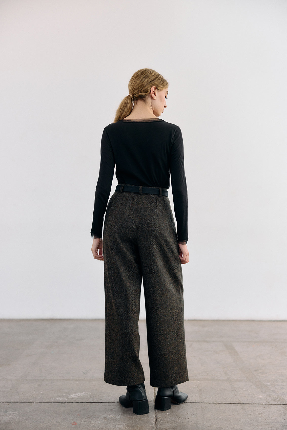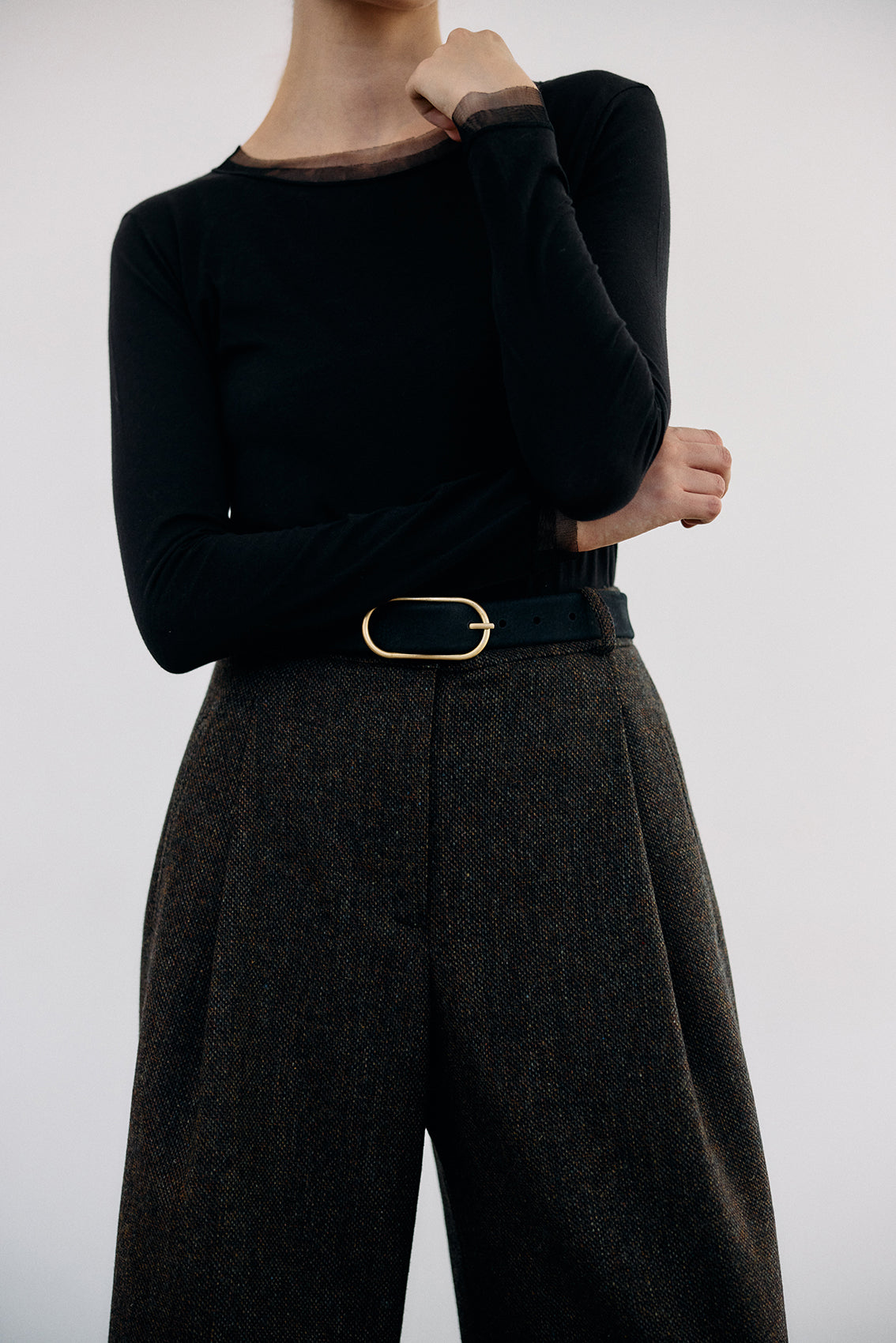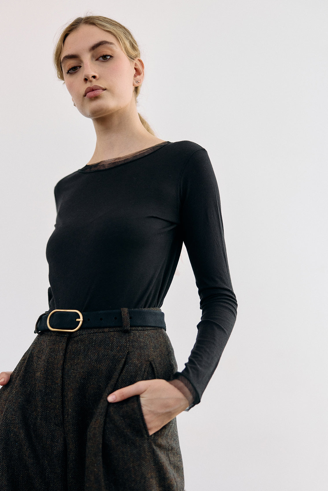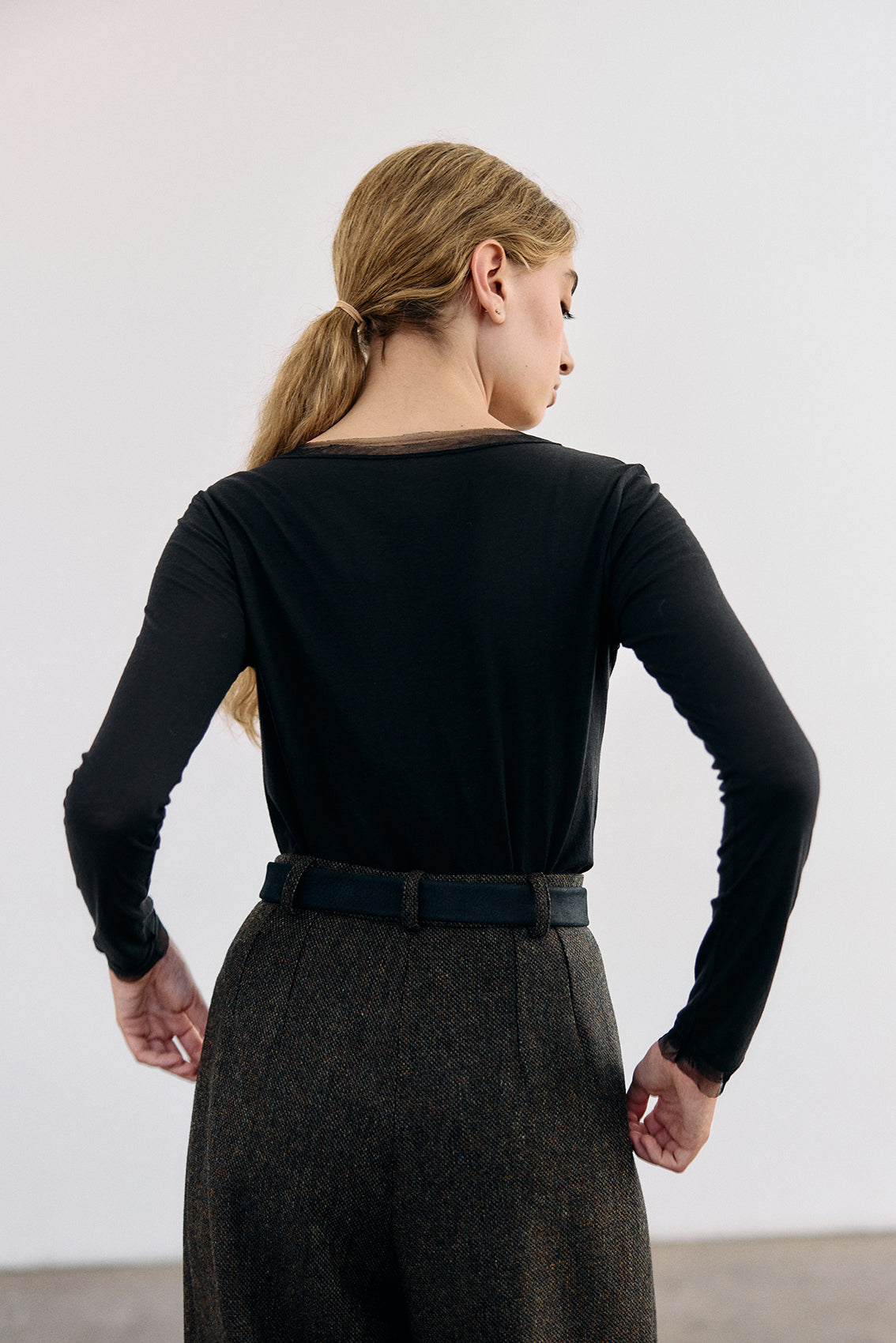 Long-Sleeve Crew Neck Pima Cotton Top - Ónix
