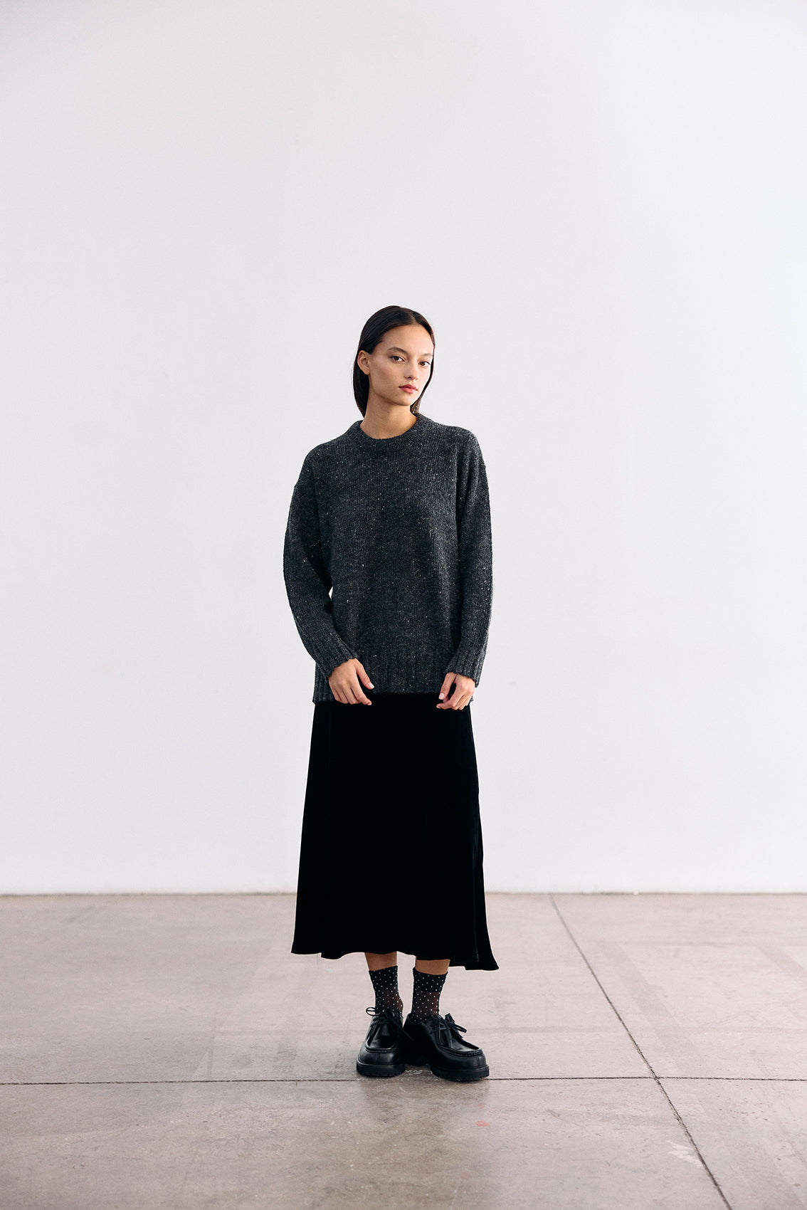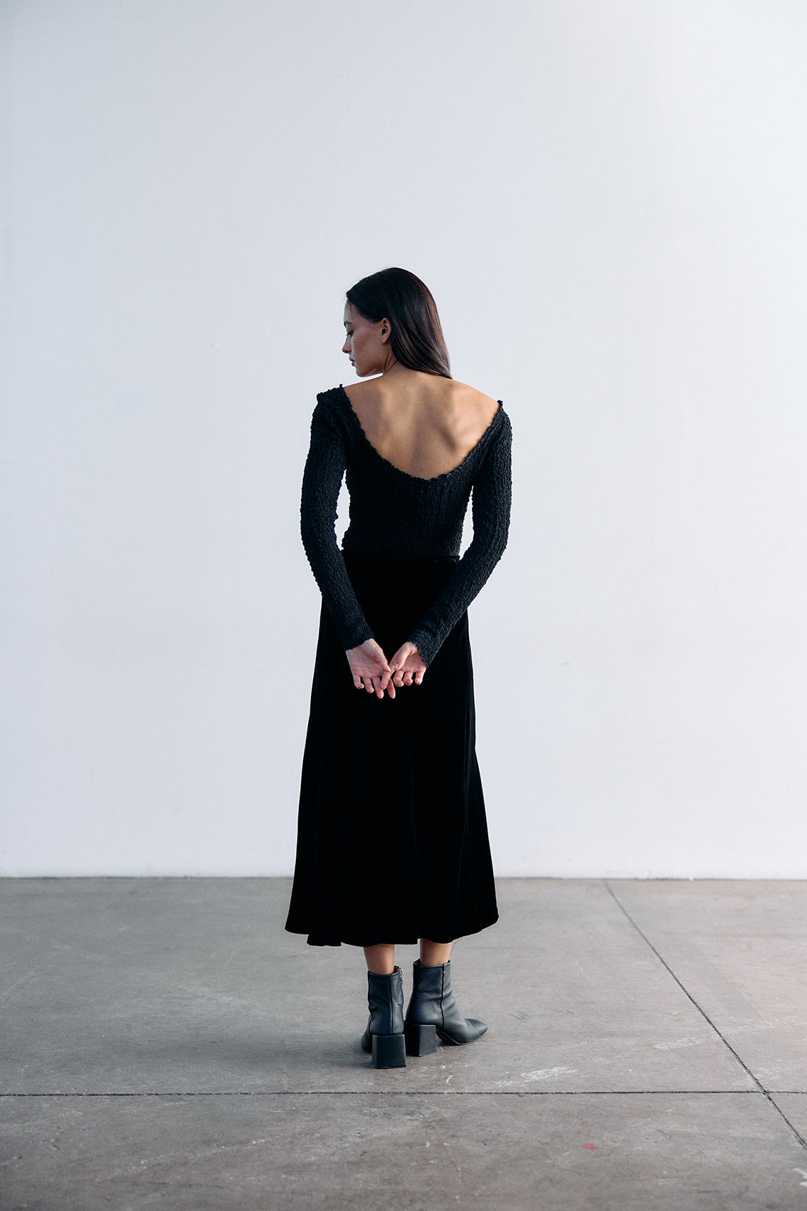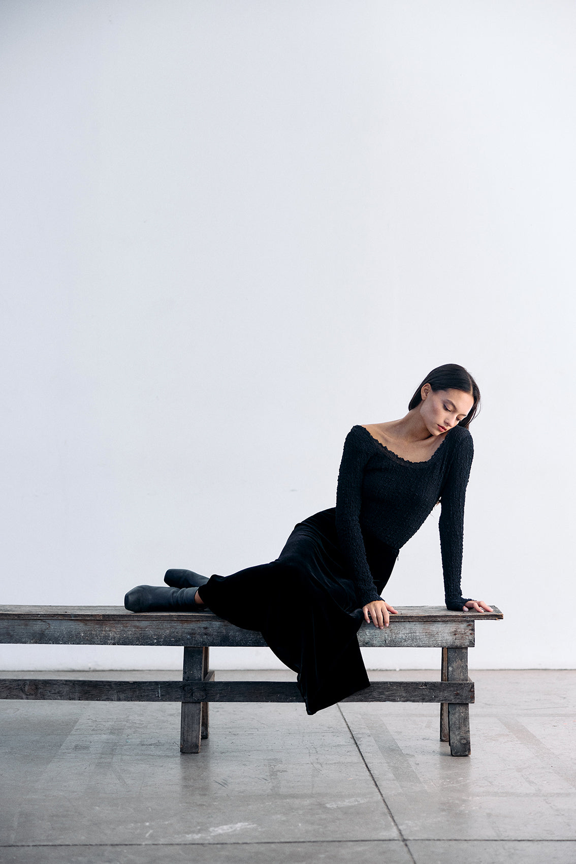 An elevated bias-cut maxi skirt crafted in a silk and rayon velvet blend. A versatile piece designed for different occasions.