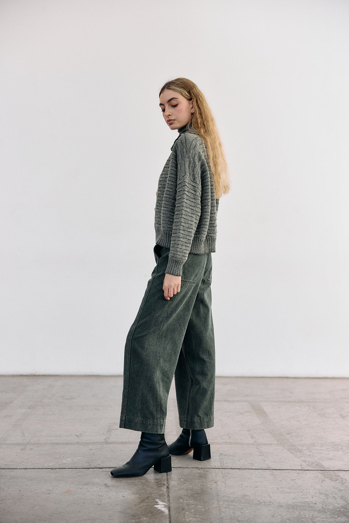 Textured Alpaca Knit Collar Cardigan - Musgo