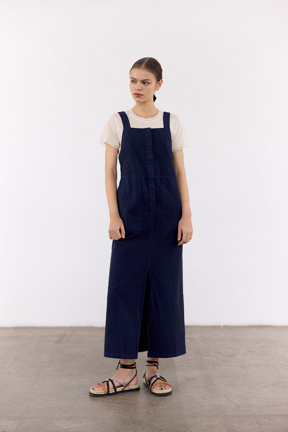 Vestido Utilitario Algodón Rugoso - Medianoche